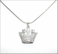 | « PreviousNext » Crown Pendant Silver NecklaceBeautiful necklace with a crown pendant of prong set CZ stones. Completed with a snake chain. Choose 16" or 18". Specifications: . Pendant: 3/4" x 3/4" crown shaped with prong set CZ. . Snake Chain: Sterling silver 16" or 18" . Stamped .925 Sterling Silver . Gift Boxed Measurement Reference: Diameter (Dime) = 18 mm = 11/16" (less 3/4") | |||||||||