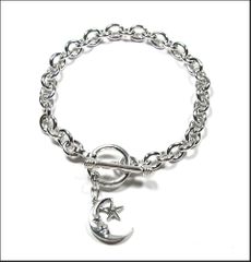 | « PreviousNext » Moon Star Charm Toggle Link Silver Bracelet 7" - 7.5"Moon Star Charm Toggle Silver Bracelet This beautiful sterling silver (17 grams) link Style bracelet has a 3/4"x 1/2" silver Moon Star charm. Completed with a toggle clasp. Choose from 7" and 7 1/2" Specifications: . Length: 7", 7 1/2" . Regular-weight . Appx. Weight: 17 grams . Link Width: 6 mm x 8 mm. . Solid .925 Sterling Silver . Gift boxed . Made in U.S.A. ** Click to view Link Gauge Comparison Table | |||||||||