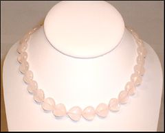 This beautiful necklace is created with heart shaped genuine rose quartz alternates with sterling silver beads. Each heart shaped bead is appx. 1/2" x 1/2" in size. | |||||||||